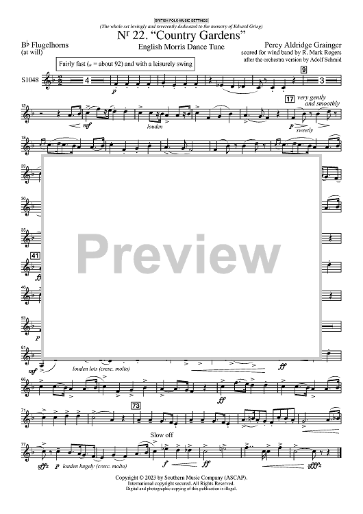 "Country Gardens for Symphonic Band - Flugelhorn" Sheet Music by Percy Grainger