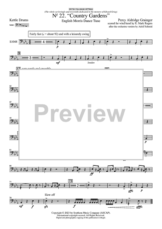 "Country Gardens for Symphonic Band - Timpani" Sheet Music by Percy Grainger