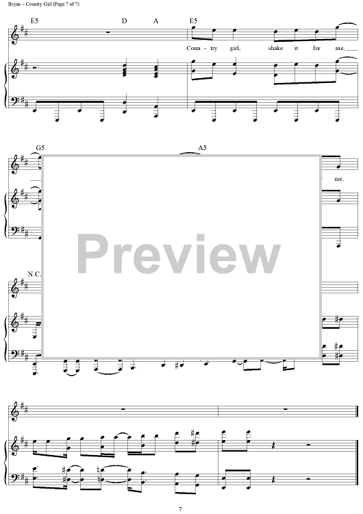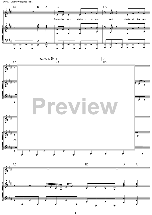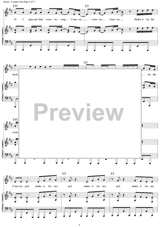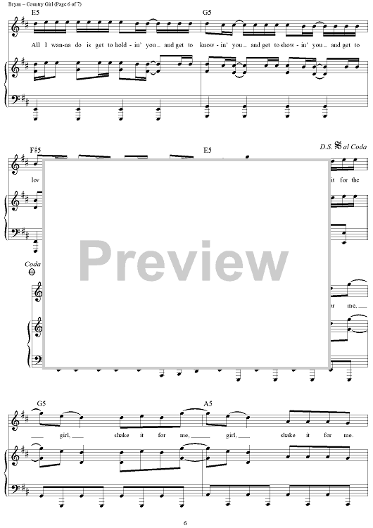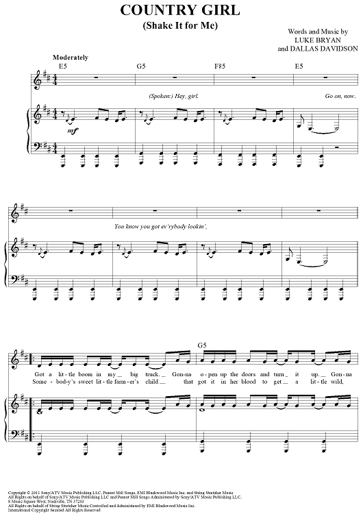 Digital Sheet Music for Country Girl (Shake It For Me) by Luke Bryan, Dallas Davidson scored for Piano/Vocal/Chords; id:428765