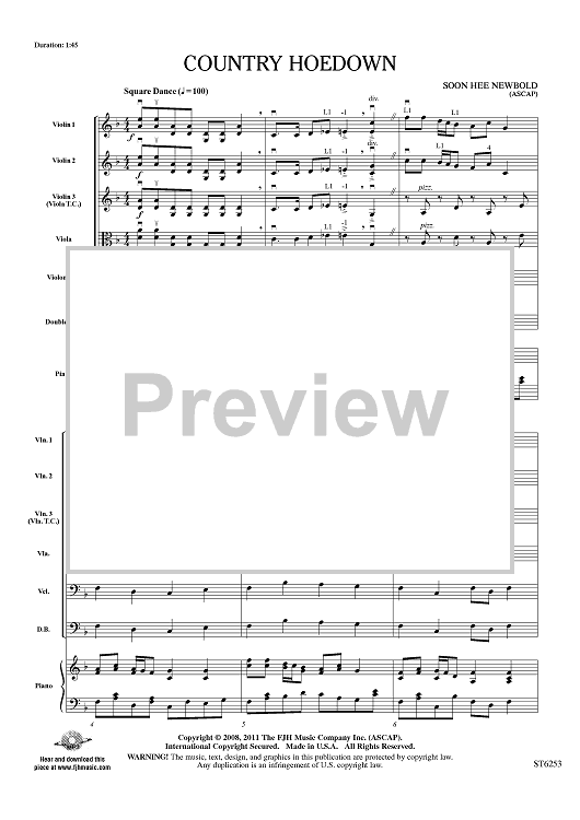 Digital Sheet Music for Country Hoedown - Score by Soon Hee Newbold scored for String Orchestra; id:421819