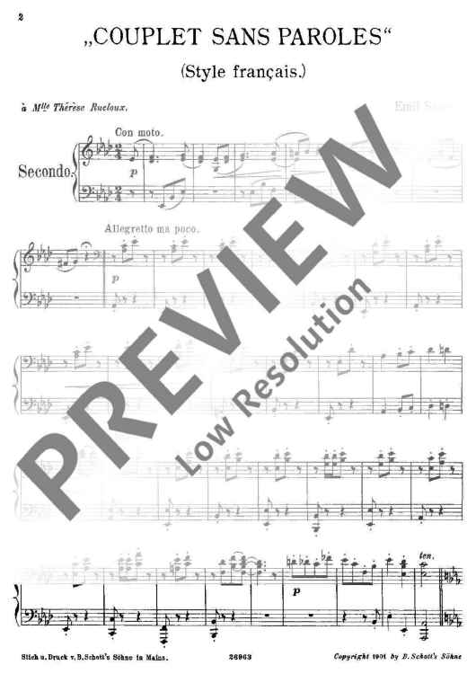 Digital Sheet Music for Couplet sans paroles by Emil von Sauer scored for Piano (4 Hands); id:471396