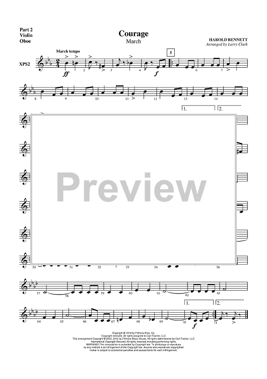 Digital Sheet Music for Courage (March) - Part 2 Oboe / Violin by Larry Clark, Harold Bennett scored for Concert Band; id:431267