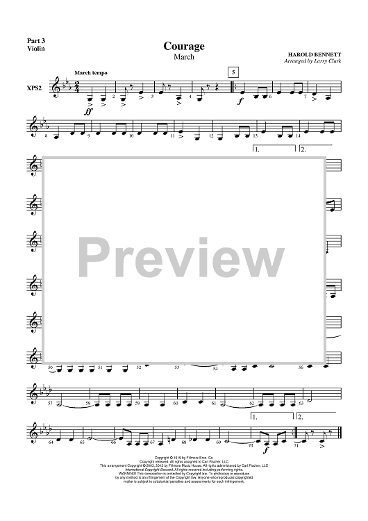 Digital Sheet Music for Courage (March) - Part 3 Violin by Larry Clark, Harold Bennett scored for Concert Band; id:431272