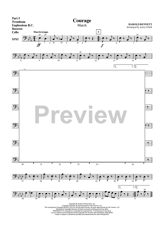 Digital Sheet Music for Courage (March) - Part 5 Trombone / Euphonium BC / Bassoon / Cello by Larry Clark, Harold Bennett scored for Concert Band; id:431278