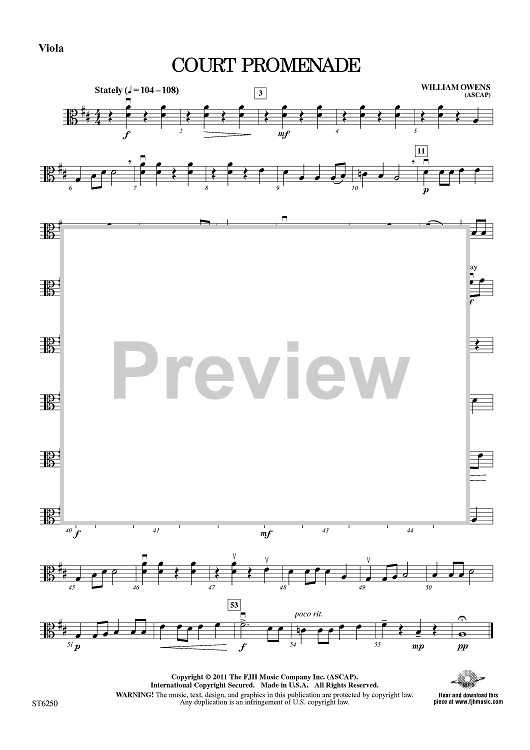 Digital Sheet Music for Court Promenade - Viola by William Owens scored for String Orchestra; id:421743