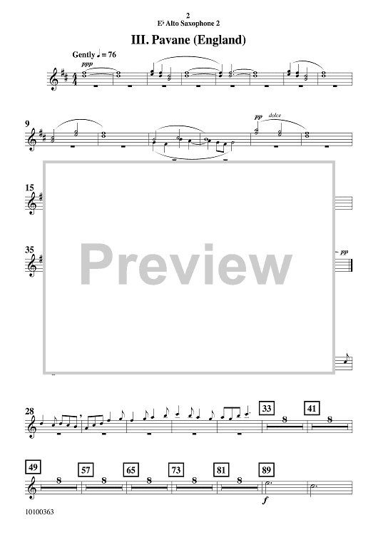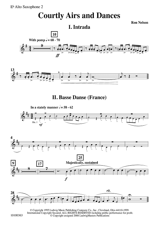 Digital Sheet Music for Courtly Airs and Dances - Eb Alto Sax 2 by Ron Nelson scored for Concert Band; id:502711