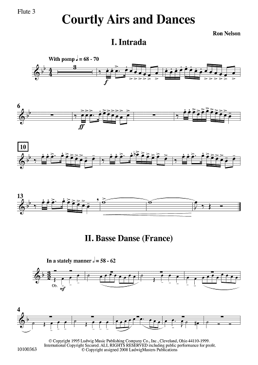 Digital Sheet Music for Courtly Airs and Dances - Flute 3 by Ron Nelson scored for Concert Band; id:502698