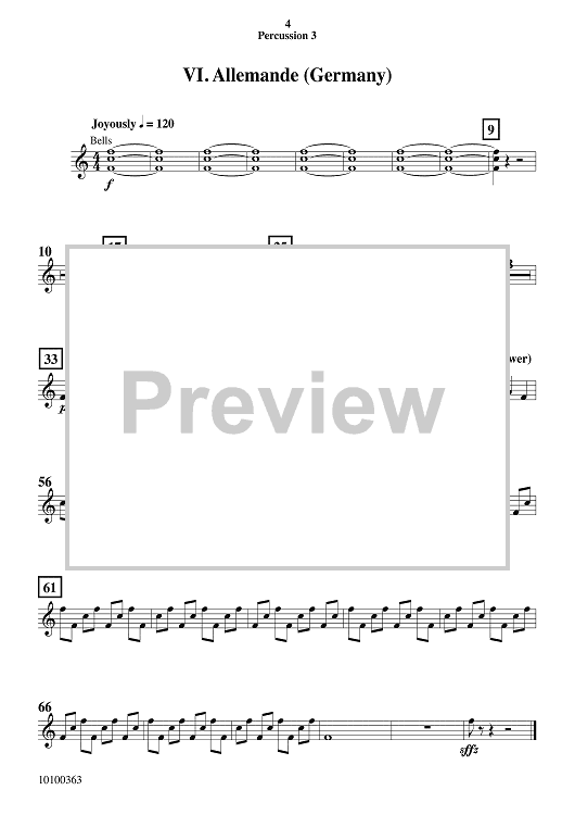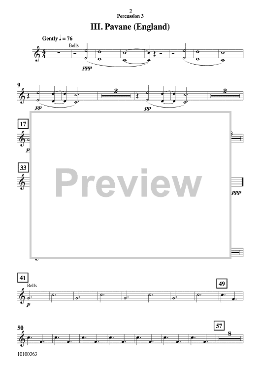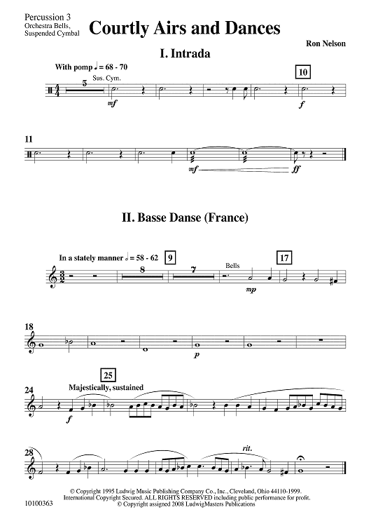 Digital Sheet Music for Courtly Airs and Dances - Percussion 3 by Ron Nelson scored for Concert Band; id:502736