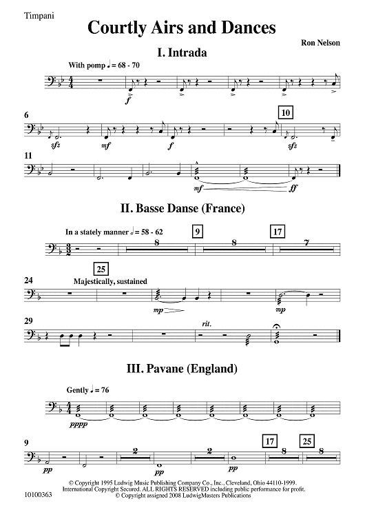Digital Sheet Music for Courtly Airs and Dances - Timpani by Ron Nelson scored for Concert Band; id:502733