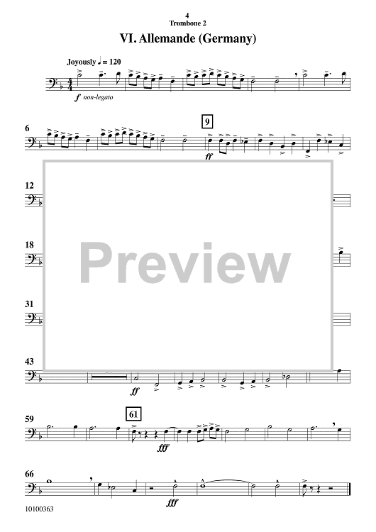 Digital Sheet Music for Courtly Airs and Dances - Trombone 2 by Ron Nelson scored for Concert Band; id:502725