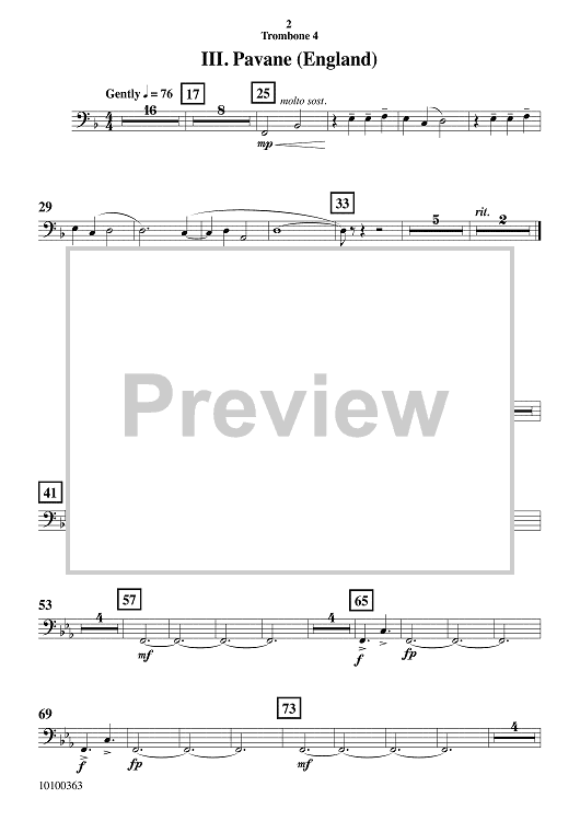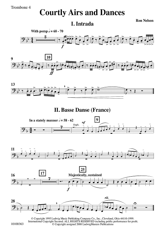 Digital Sheet Music for Courtly Airs and Dances - Trombone 4 by Ron Nelson scored for Concert Band; id:502727
