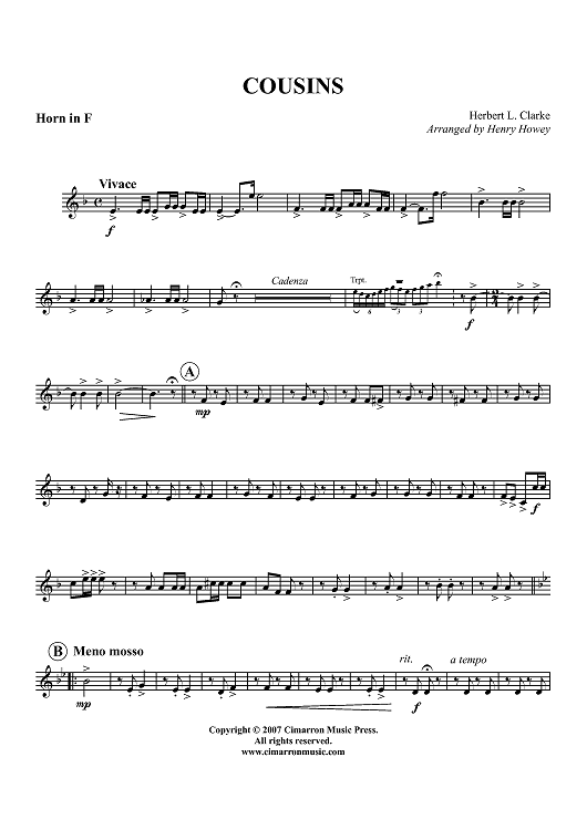 "Cousins - Horn in F" Sheet Music by H. Clarke