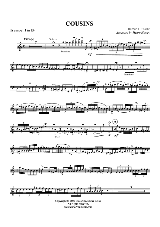 "Cousins - Trumpet 1 in B-flat" Sheet Music by H. Clarke