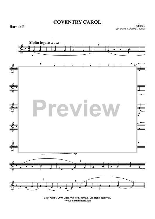 "Coventry Carol - Horn in F" Sheet Music by Traditional