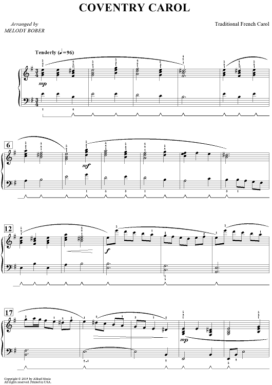 Digital Sheet Music for Coventry Carol by Traditional French Carol, Melody Bober scored for Piano; id:458945