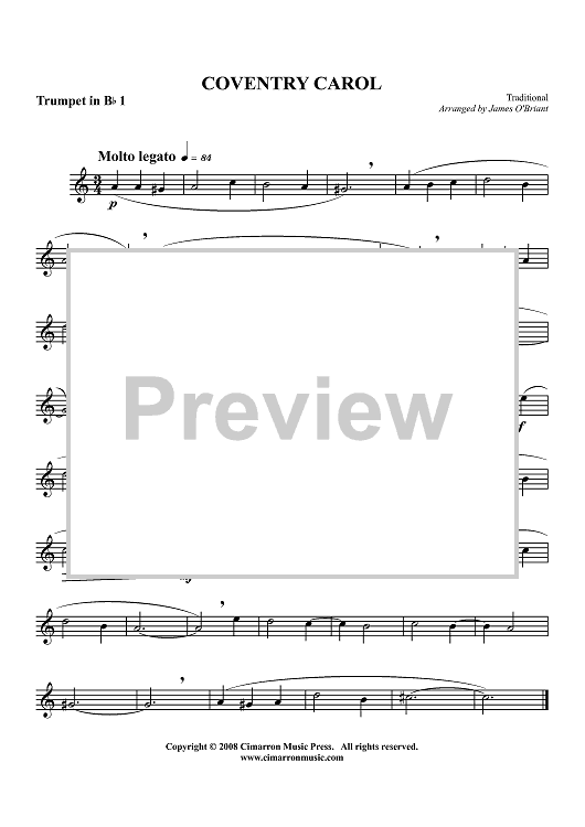 "Coventry Carol - Trumpet 1 in Bb" Sheet Music by Traditional