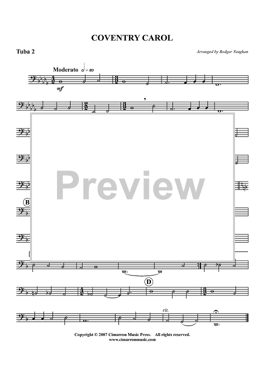 Digital Sheet Music for Coventry Carol - Tuba 2 by Rodger Vaughan, Traditional scored for Tuba Quartet; id:413483