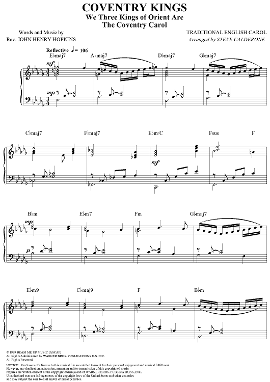 Digital Sheet Music for Coventry Kings (The Coventry Carol) by Steve Calderone, John Henry Hopkins, Jr. scored for Piano Solo; id:260841