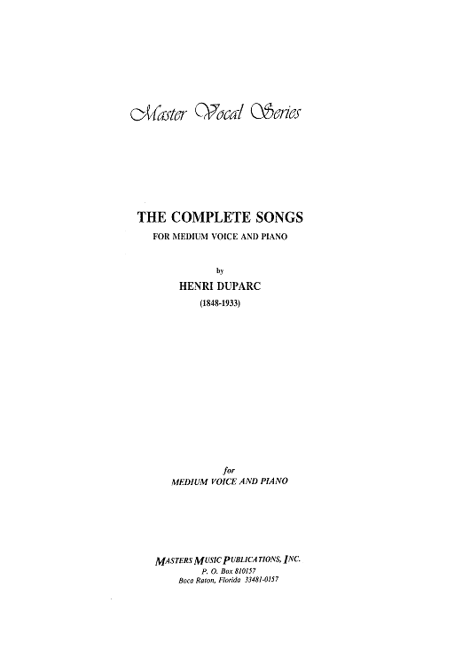 "Cover Image and Contents - Bonus Material" Sheet Music by Henri Duparc