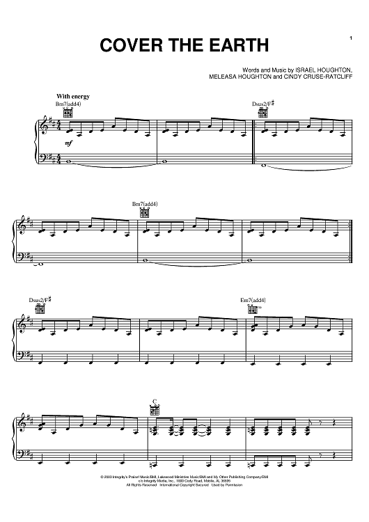 Digital Sheet Music for Cover The Earth by Israel Houghton, Cindy Cruse-Ratcliff, Meleasa Houghton scored for Piano/Vocal/Chords; id:401500