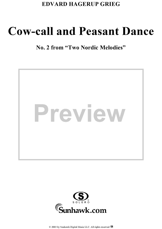 "Cow-call and Peasant Dance from "Two Nordic Melodies"" Sheet Music by Edvard Grieg