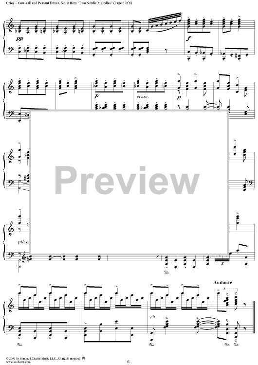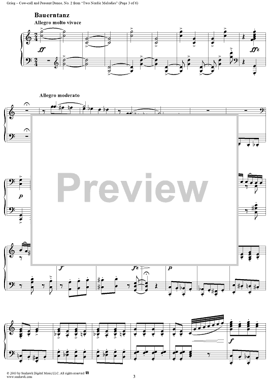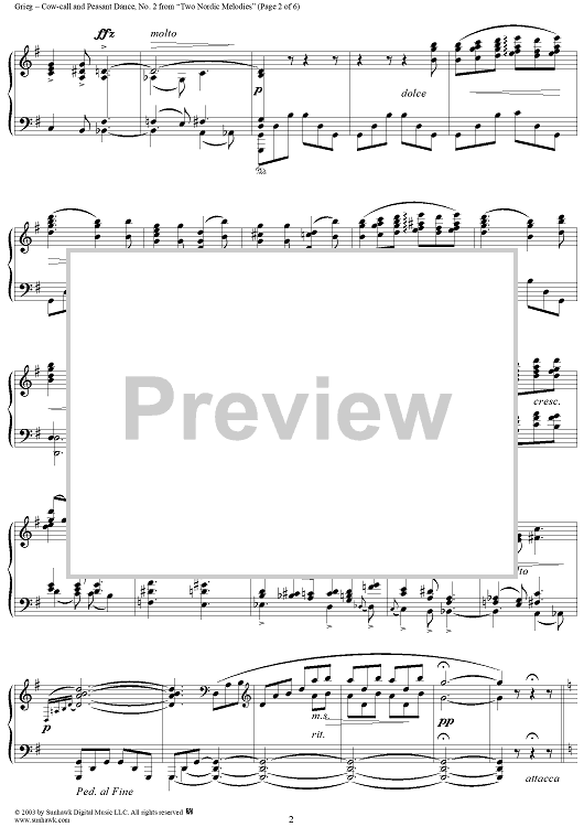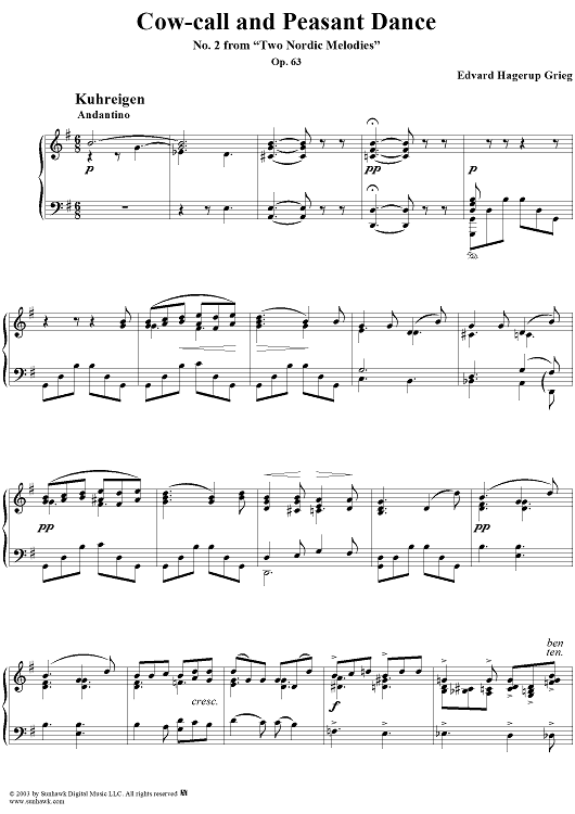 Digital Sheet Music for Cow-call and Peasant Dance from "Two Nordic Melodies" by Edvard Grieg scored for Piano Solo; id:267651