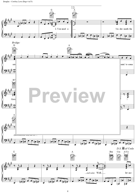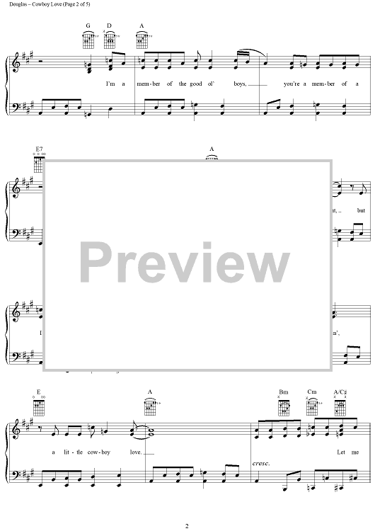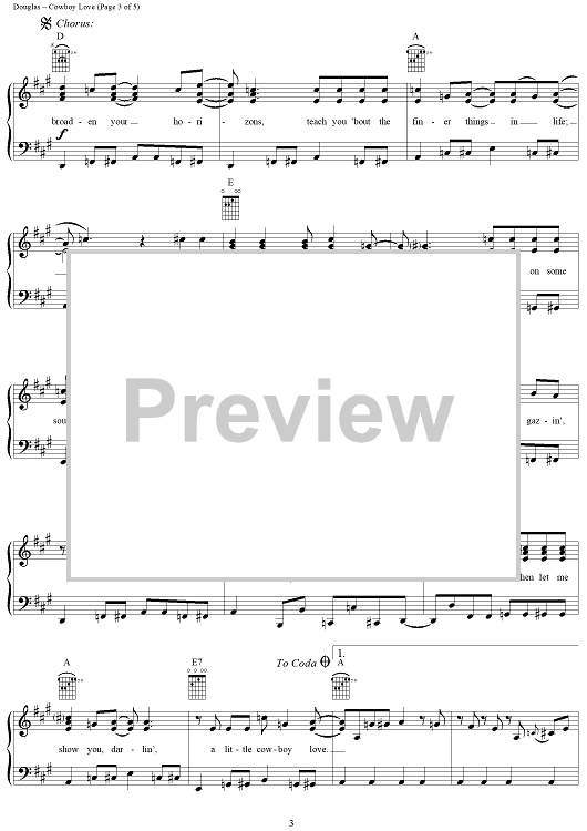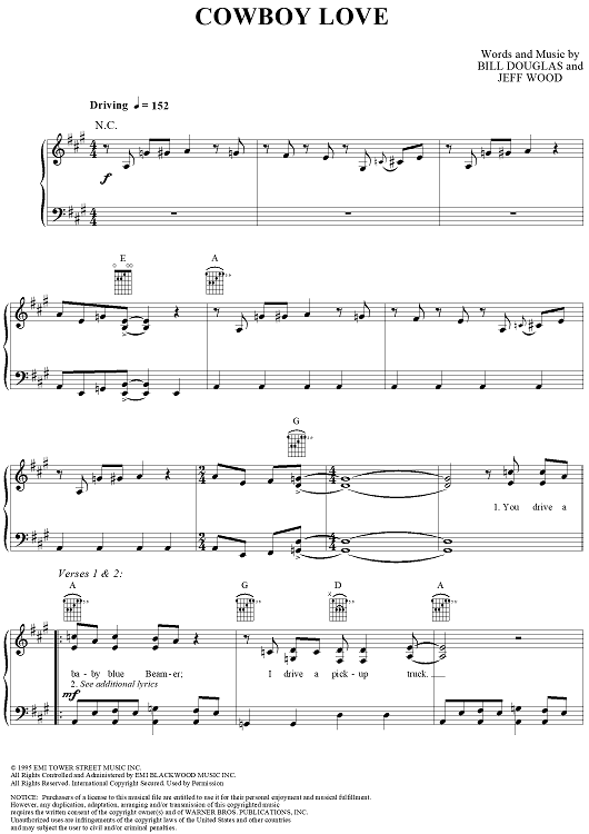 Digital Sheet Music for Cowboy Love by John Michael Montgomery, Bill Douglas, Jeff Wood scored for Piano/Vocal/Chords; id:271242