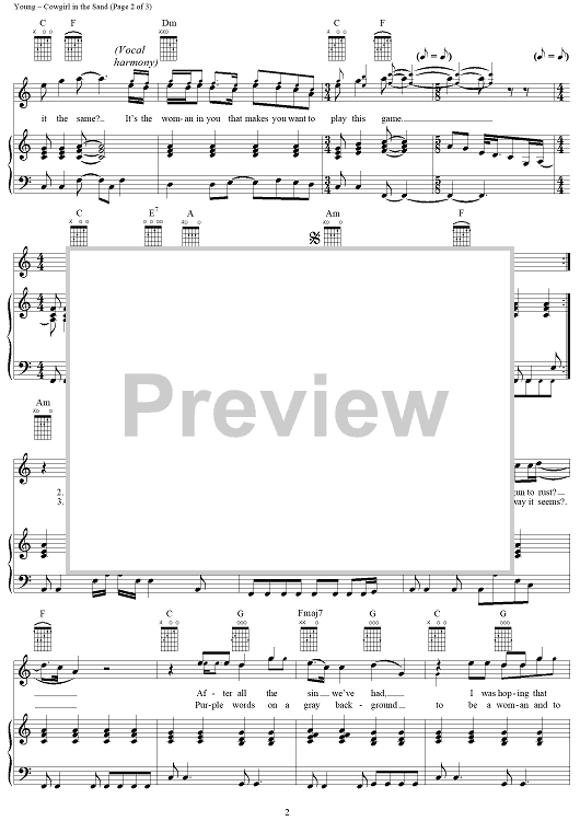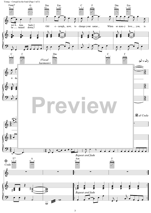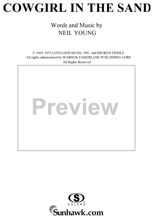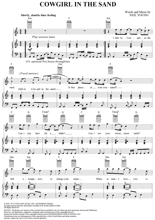 Digital Sheet Music for Cowgirl in the Sand by Neil Young scored for Piano/Vocal/Chords; id:262935