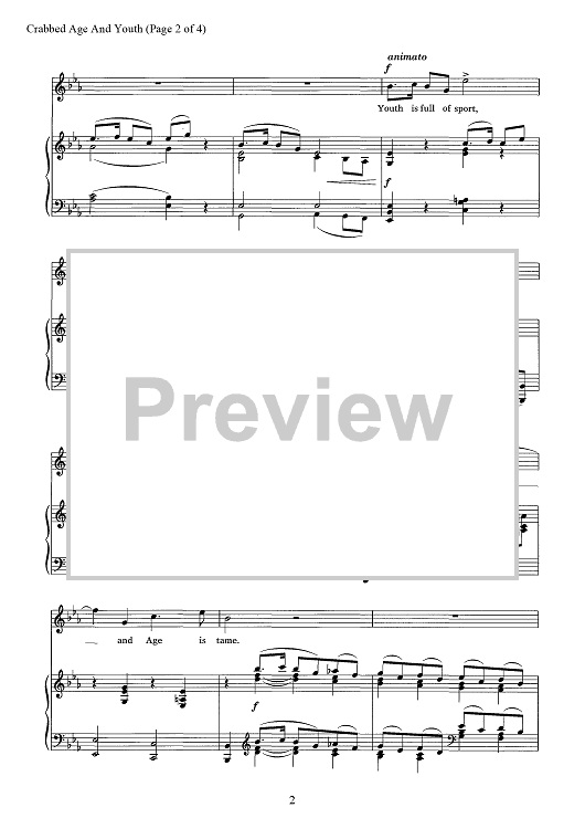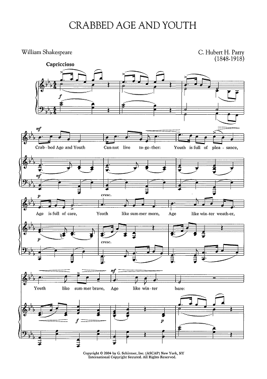 Digital Sheet Music for Crabbed Age And Youth by Charles Hubert Hastings Parry, William Shakespeare scored for Piano/Vocal; id:466741