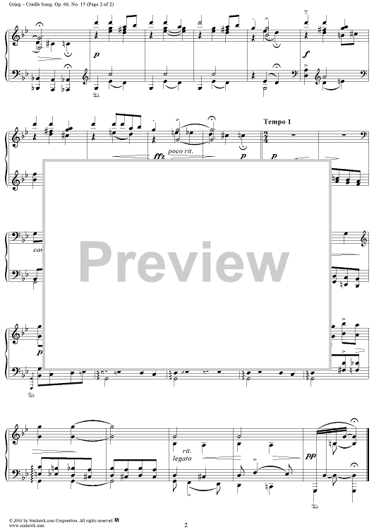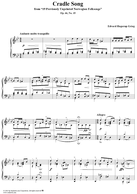 Digital Sheet Music for Craddle Song by Edvard Grieg scored for Piano Solo; id:267813
