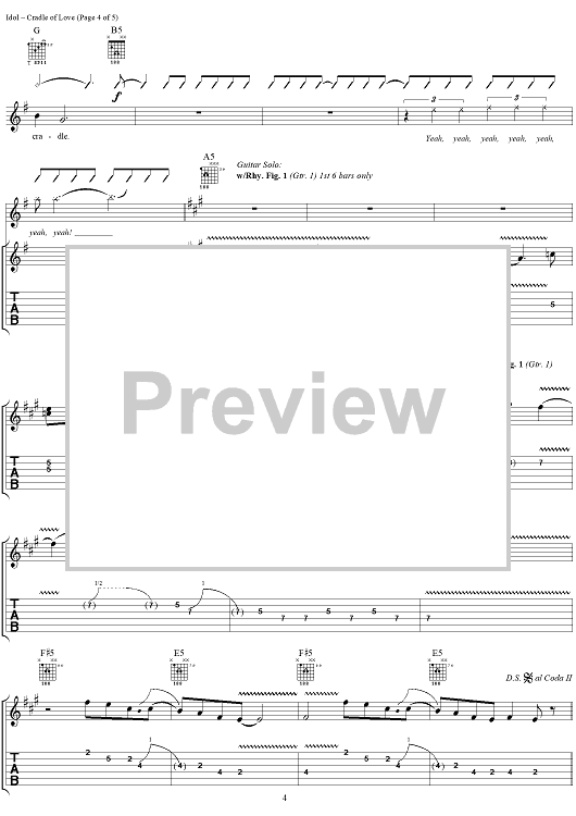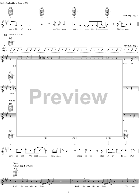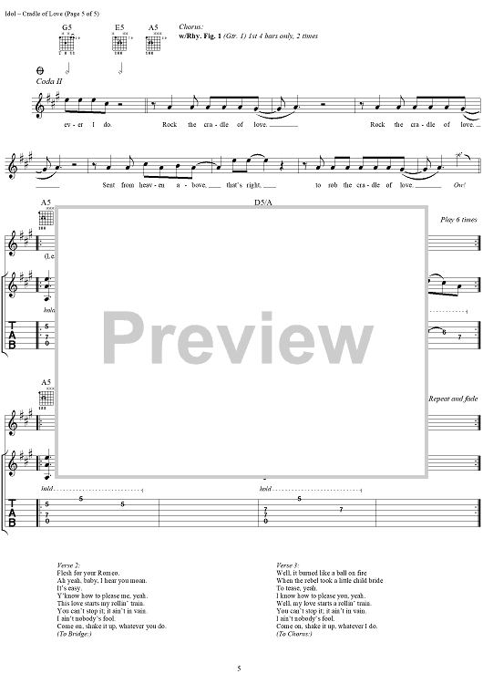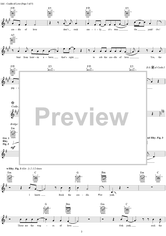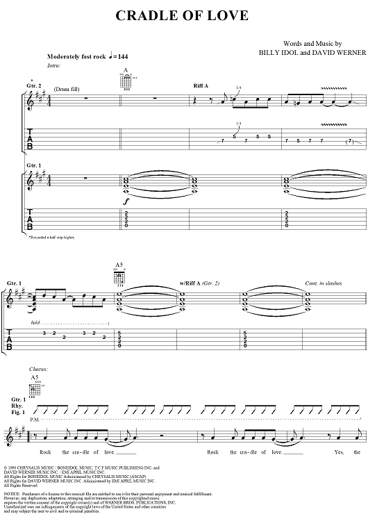Digital Sheet Music for Cradle of Love by Billy Idol, David Werner scored for Guitar Tab/Vocal; id:287781