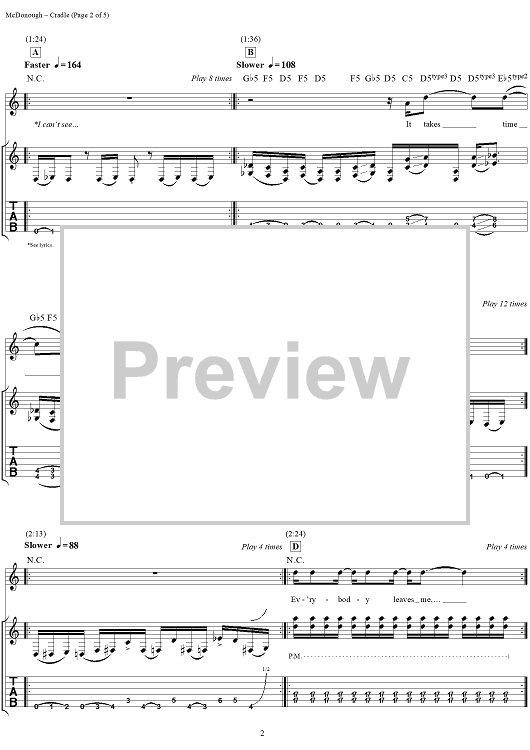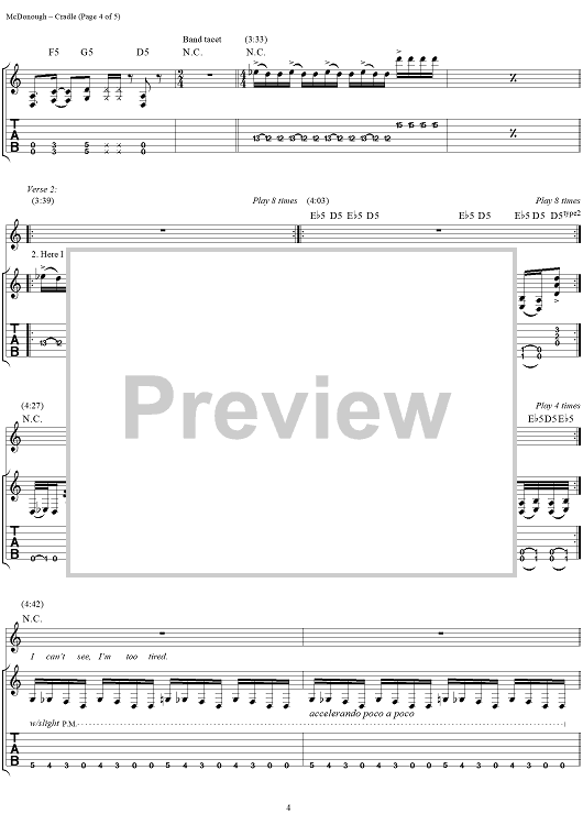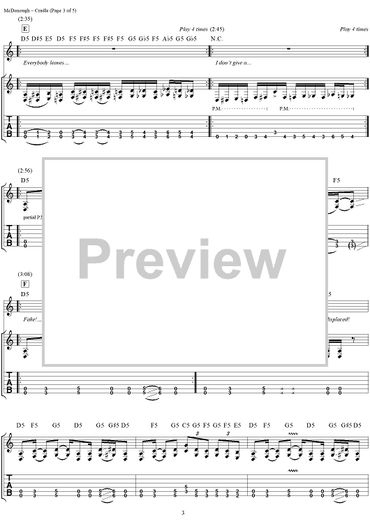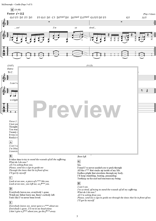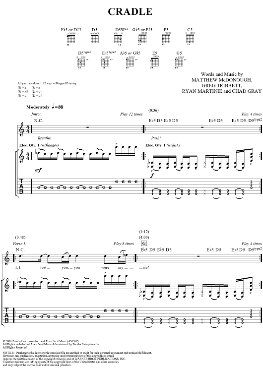 Digital Sheet Music for Cradle by Matthew McDonough, Gurrg, Ry-Know, Chad Gray, Mudvayne scored for Guitar Tab/Vocal; id:287905