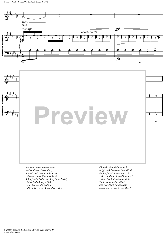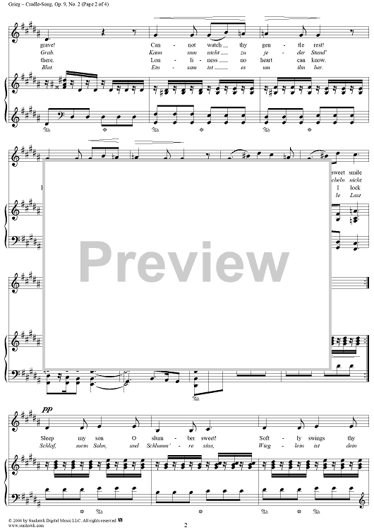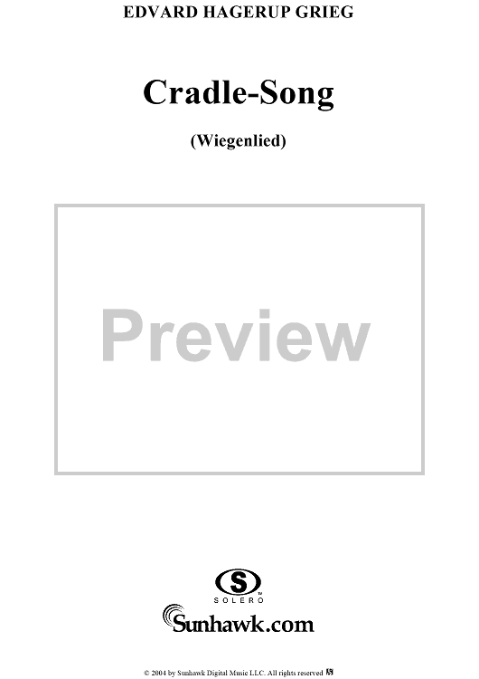 Digital Sheet Music for Cradle-Song, Op. 9, No. 2 by Edvard Grieg, A. Munch scored for Voice/Piano; id:303569