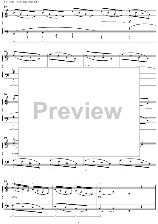 Digital Sheet Music for Cradle Song by Dmitri Kabalevsky scored for Piano Solo; id:287465