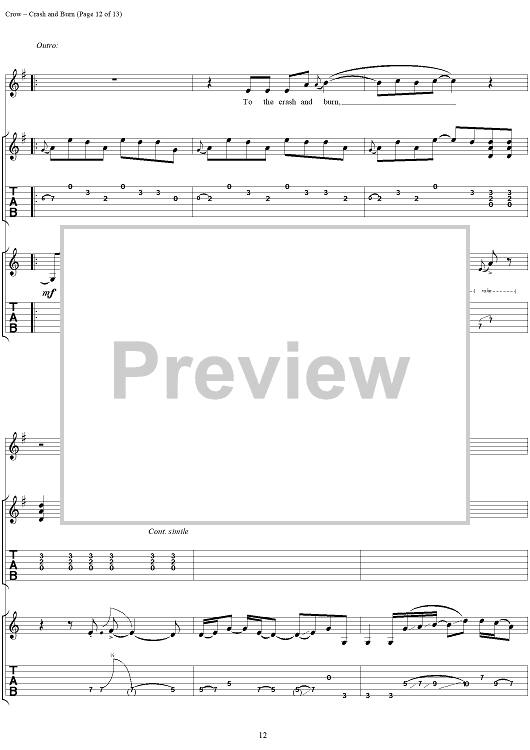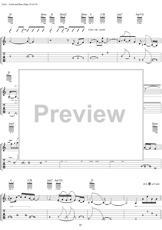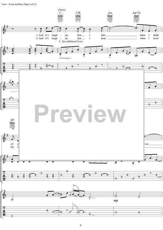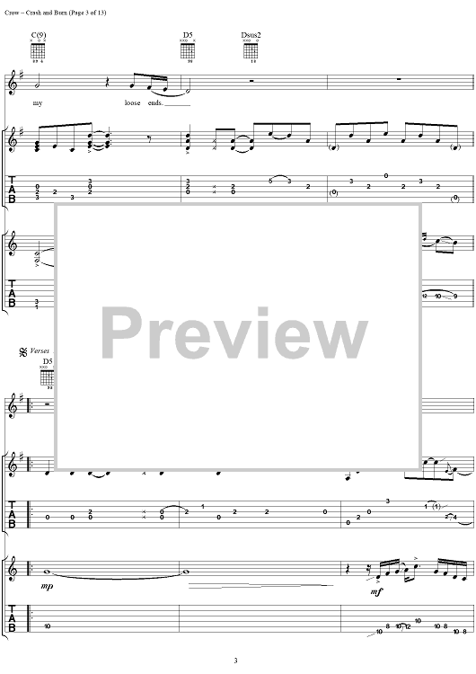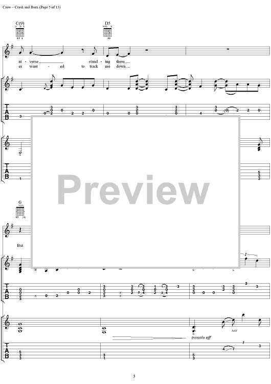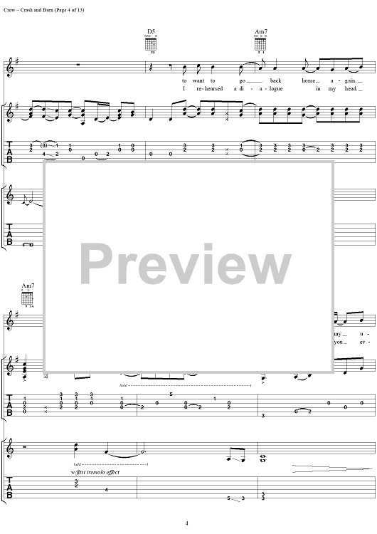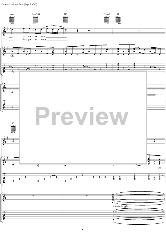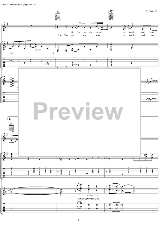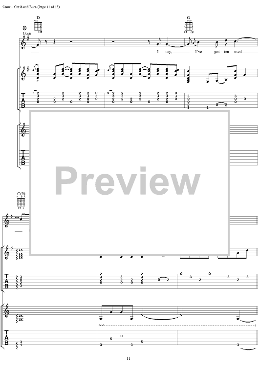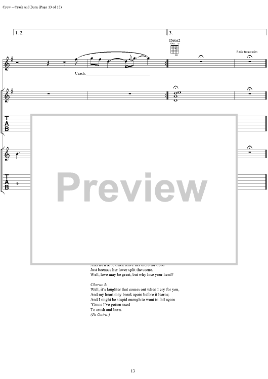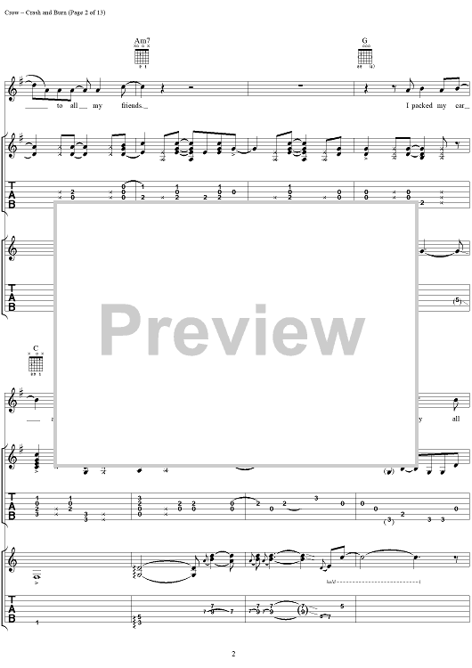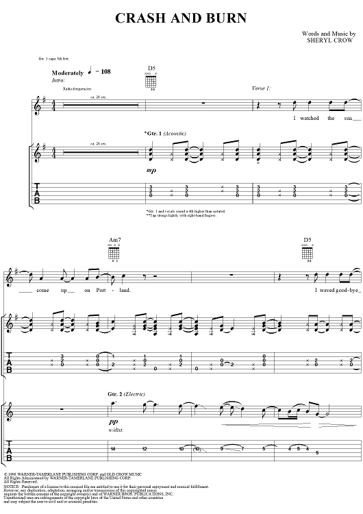 Digital Sheet Music for Crash and Burn by Sheryl Crow scored for Guitar Tab/Vocal; id:114075