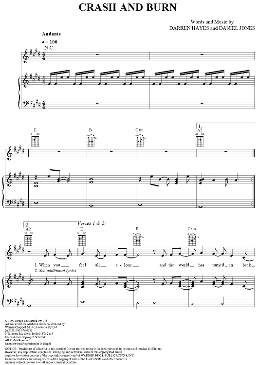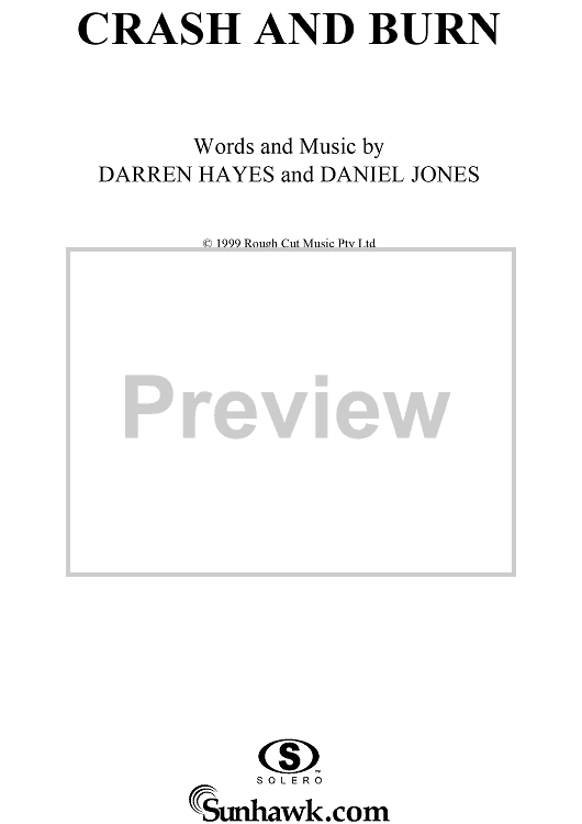 Digital Sheet Music for Crash And Burn by Darren Hayes, Daniel Jones, Savage Garden scored for Piano/Vocal/Chords; id:225156