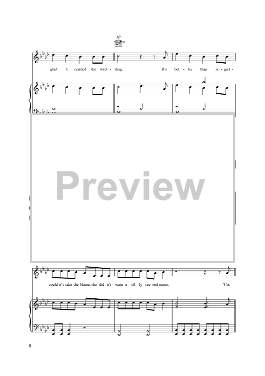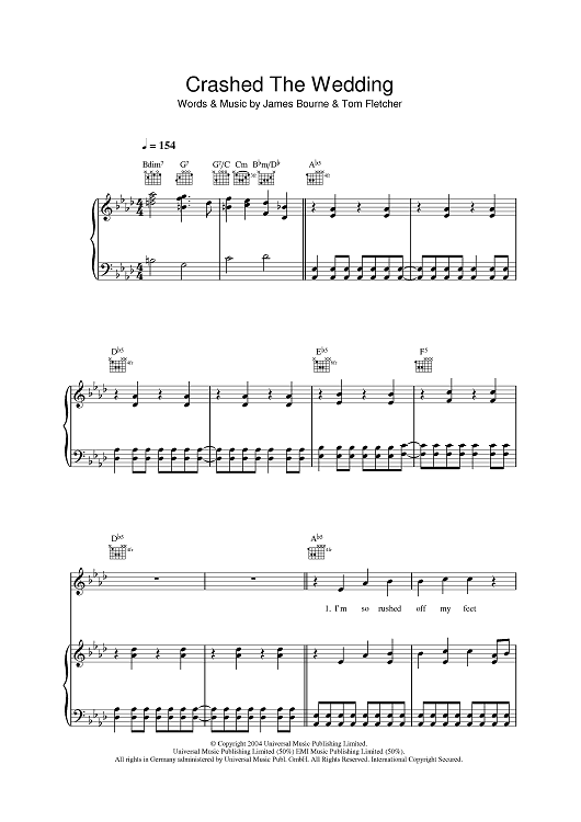 Digital Sheet Music for Crashed The Wedding by Tom Fletcher, James Bourne, Busted scored for Piano/Vocal/Chords; id:394695