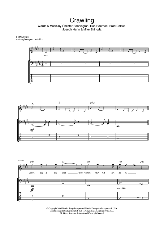 Digital Sheet Music for Crawling by Linkin Park scored for Bass Tab; id:377481