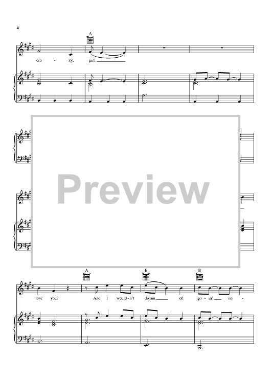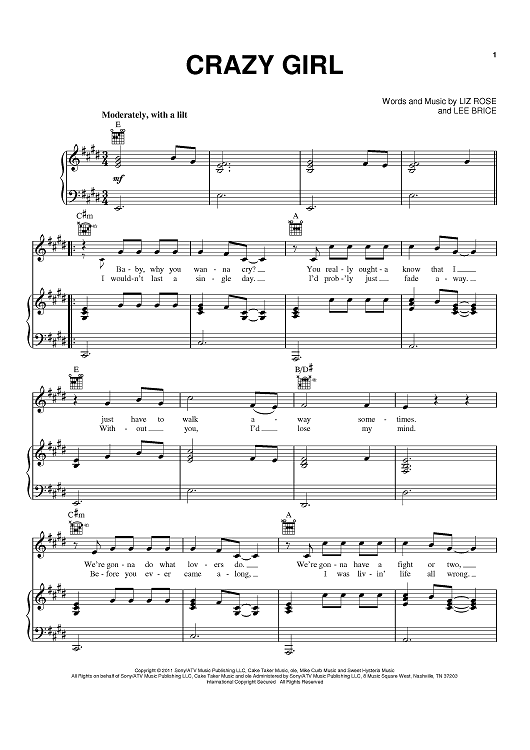 Digital Sheet Music for Crazy Girl by Liz Rose, Lee Brice, Eli Young Band scored for Piano/Vocal/Chords; id:428747
