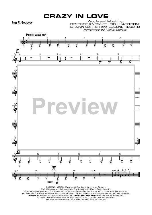 "Crazy in Love - B-flat Trumpet 3" Sheet Music by Beyonce
