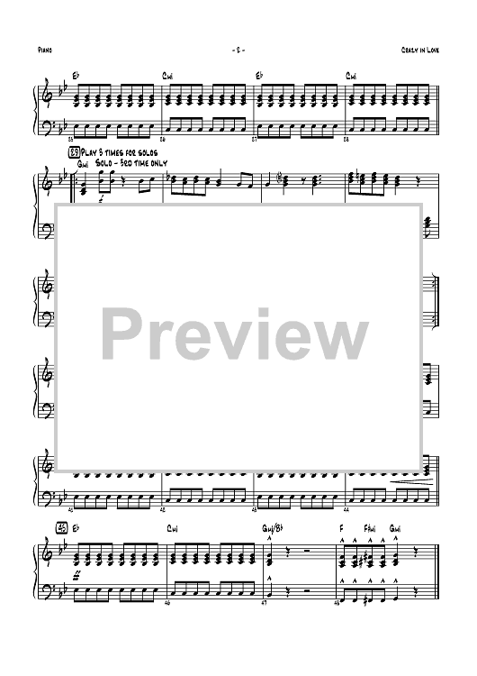 Digital Sheet Music for Crazy in Love - Piano by Beyonce, Rich Harrison, Shawn Carter, Eugene Record, Mike Lewis scored for Jazz Ensemble; id:358705