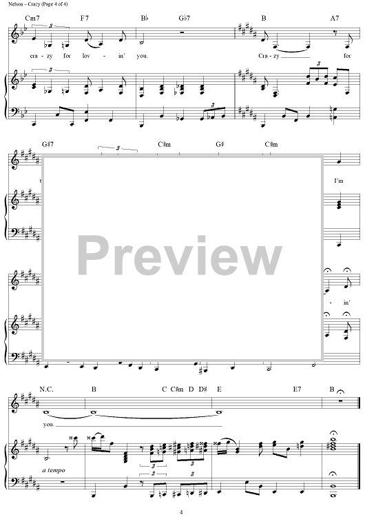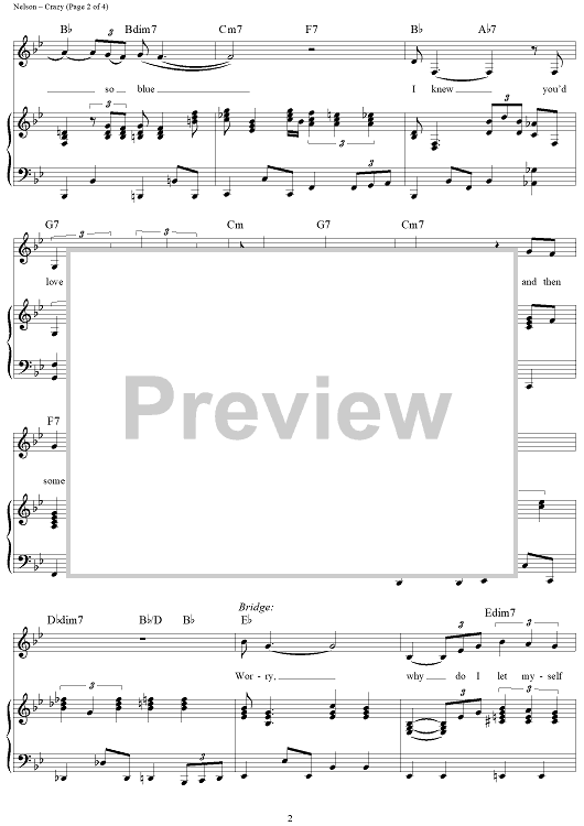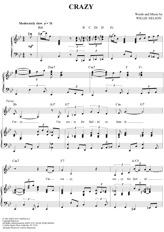 Digital Sheet Music for Crazy by Willie Nelson scored for Piano/Vocal/Chords; id:360898