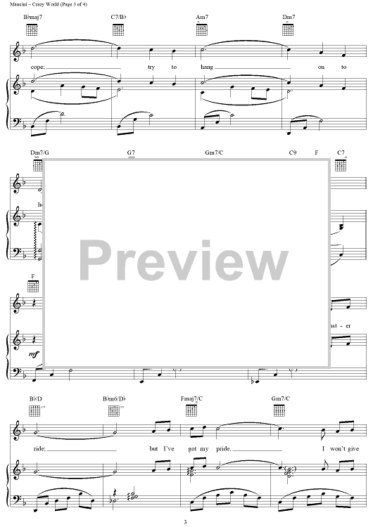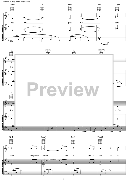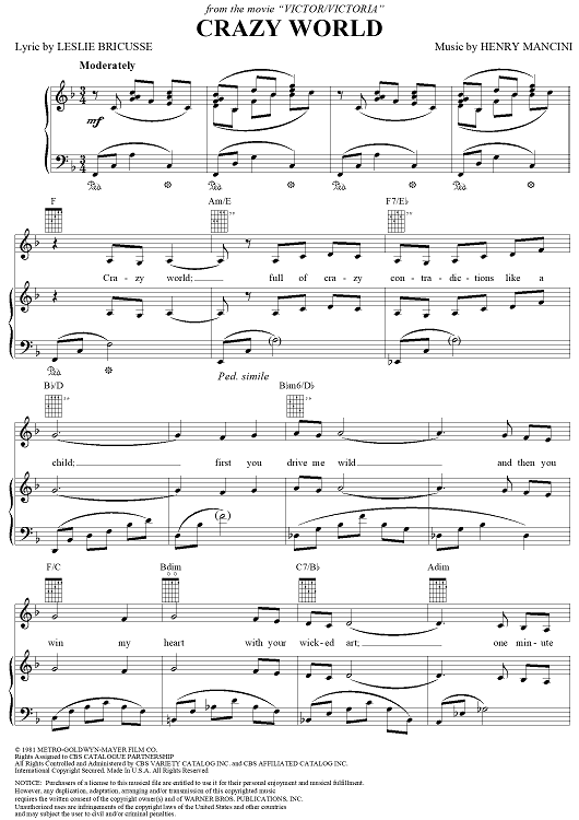 Digital Sheet Music for Crazy World by Henry Mancini, Leslie Bricusse scored for Piano/Vocal/Chords; id:117809