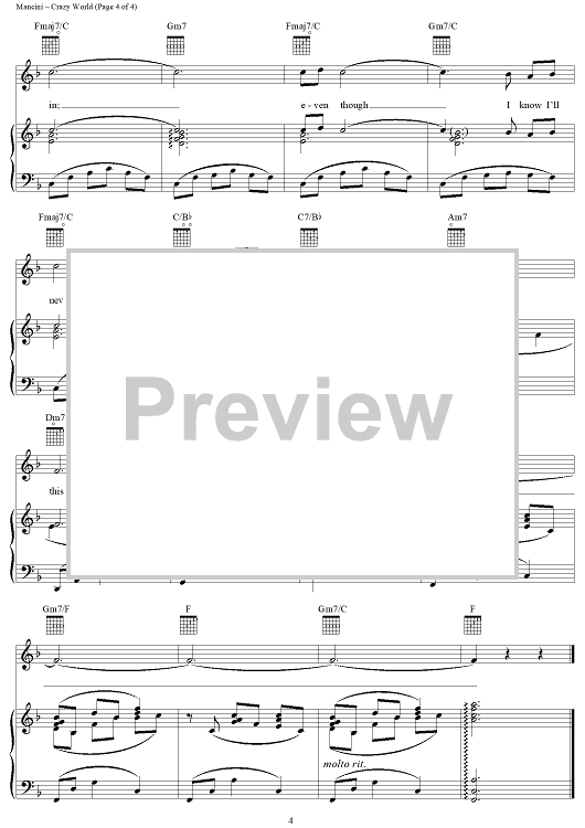 "Crazy World" Sheet Music by Henry Mancini