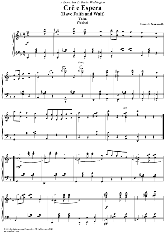 "Crê e Espera" Sheet Music by Ernesto Nazareth