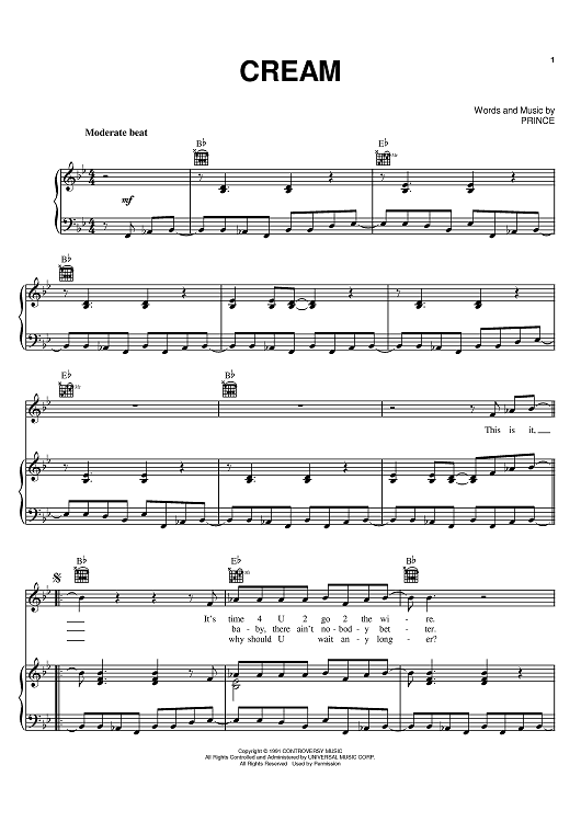 Digital Sheet Music for Cream by Prince scored for Piano/Vocal/Chords; id:398354