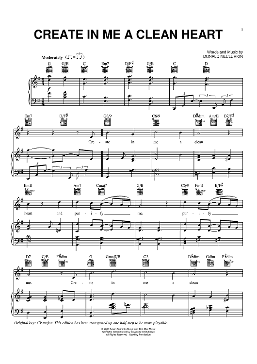 "Create In Me A Clean Heart" Sheet Music by Donnie McClurkin