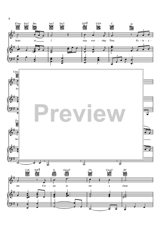 Digital Sheet Music for Create In Me A Clean Heart by Donnie McClurkin scored for Piano/Vocal/Chords; id:372970