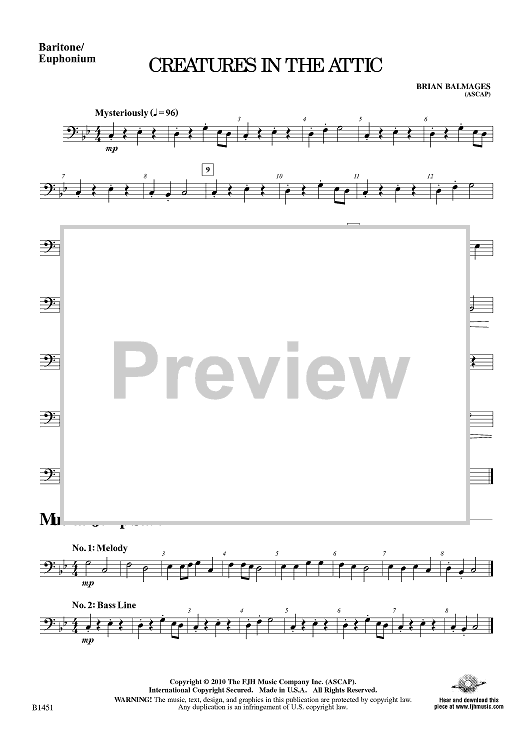 Digital Sheet Music for Creatures in the Attic - Baritone/Euphonium by Brian Balmages scored for Beginning Band; id:415189
