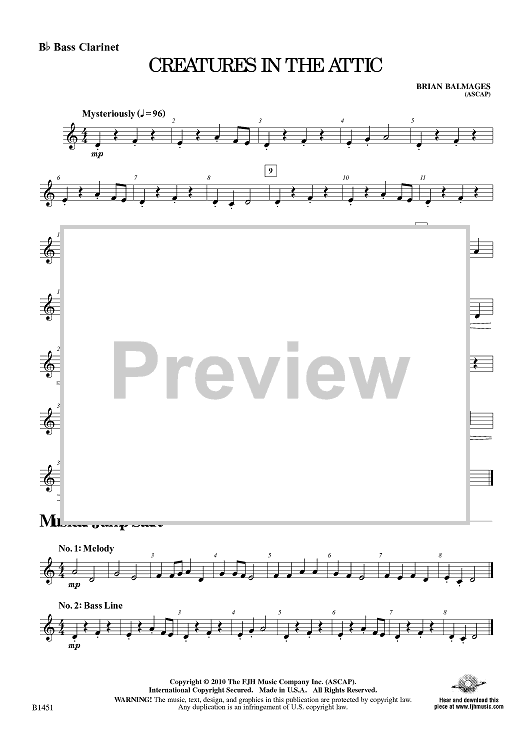 Digital Sheet Music for Creatures in the Attic - Bb Bass Clarinet by Brian Balmages scored for Beginning Band; id:415182